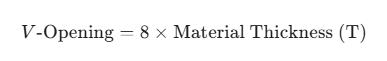 Para acero dulce estándar, la regla general para seleccionar la abertura de la matriz en V es: