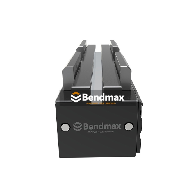 El Soporte perforador de abrazadera rápida estilo Amada El sistema de sujeción de bendmax ofrece la facilidad y rapidez de activación manual mediante palanca para sujetar y asentar rápidamente punzones de estilo europeo. Añadir un sistema de sujeción a su plegadora es como darle nueva vida a su máquina: incorpora funcionalidades actualizadas y renueva la superficie de plegado. Las abrazaderas son una excelente manera de reducir drásticamente el tiempo de preparación y cambio de formato. Su diseño modular ofrece flexibilidad para el plegado de cajas y otras configuraciones complejas.