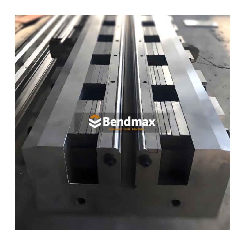 Disponemos de una gama completa de herramientas estándar para prensas plegadoras con capacidades de 120 a 30 000 kN. Incluye matrices en V simples, múltiples y ajustables, herramientas verticales desmontables y herramientas especiales para aplicaciones personalizadas. Bendmax fabrica herramientas de alta calidad, rectificadas con precisión y elaboradas con los mejores materiales para lograr la máxima resistencia y una larga vida útil. El Matriz de freno V simple estilo LVD Fabricada en acero para herramientas 42CrMo endurecido, esta matriz en V está diseñada para formar ángulos agudos en piezas de chapa metálica de precisión utilizadas en carcasas eléctricas, componentes de ferretería y fabricación ligera. Al elegir este tipo de matriz en V, asegúrese de que la abertura en V corresponda al espesor del material y al radio interno deseado para obtener resultados precisos sin sobrecargar la matriz. Para un rendimiento óptimo, los operarios deben mantener limpias las superficies de la matriz, asegurar una correcta alineación y evitar exceder los límites de carga de la plegadora para prevenir el desgaste prematuro o la inconsistencia angular.