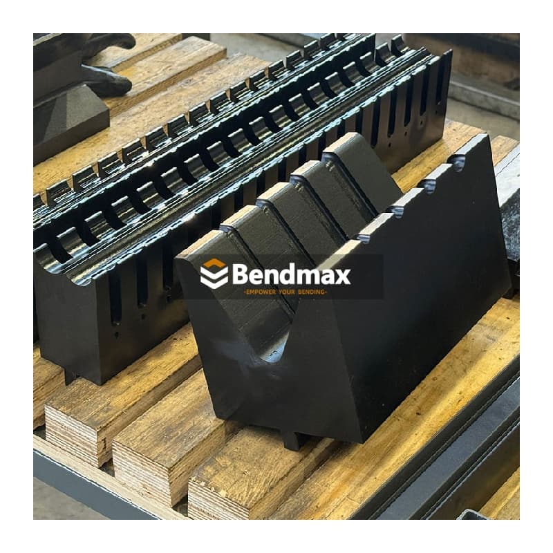 Disponemos de una gama completa de herramientas estándar para prensas plegadoras con capacidades de 120 a 30 000 kN. Incluye matrices en V simples, múltiples y ajustables, herramientas verticales desmontables y herramientas especiales para aplicaciones personalizadas. Bendmax fabrica herramientas de alta calidad, rectificadas con precisión y elaboradas con los mejores materiales para lograr la máxima resistencia y una larga vida útil. El Matriz de freno V simple estilo LVD Fabricada en acero para herramientas 42CrMo endurecido, esta matriz en V está diseñada para formar ángulos agudos en piezas de chapa metálica de precisión utilizadas en carcasas eléctricas, componentes de ferretería y fabricación ligera. Al elegir este tipo de matriz en V, asegúrese de que la abertura en V corresponda al espesor del material y al radio interno deseado para obtener resultados precisos sin sobrecargar la matriz. Para un rendimiento óptimo, los operarios deben mantener limpias las superficies de la matriz, asegurar una correcta alineación y evitar exceder los límites de carga de la plegadora para prevenir el desgaste prematuro o la inconsistencia angular.