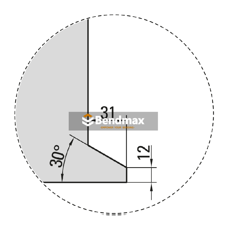 El Punzón agudo de 30° con sistema BystronicEs una matriz inferior especializada tipo Trumpf, diseñada para el conformado de chapa metálica de alta precisión. Cuenta con una abertura estrecha de 0,6 mm y un ángulo de 84° para facilitar dobleces precisos en materiales de calibre delgado. Fabricada en acero para herramientas endurecido con un radio de hombro de 6,0 mm, esta matriz minimiza las marcas superficiales y ofrece un rendimiento constante en entornos de fabricación de precisión.