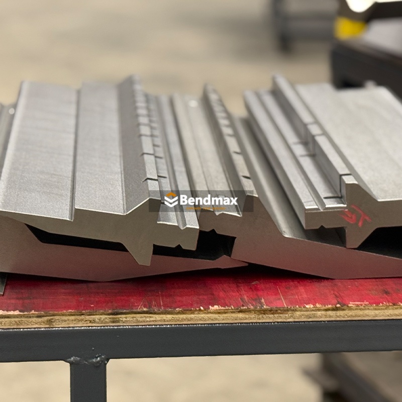 Disponemos de una gama completa de herramientas estándar para prensas plegadoras con capacidades de 120 a 30 000 kN. Incluye matrices en V simples, múltiples y ajustables, herramientas verticales desmontables y herramientas especiales para aplicaciones personalizadas. Bendmax fabrica herramientas de alta calidad, rectificadas con precisión y elaboradas con los mejores materiales para lograr la máxima resistencia y una larga vida útil. El Matriz de freno V simple estilo LVD Fabricada en acero para herramientas 42CrMo endurecido, esta matriz en V está diseñada para formar ángulos agudos en piezas de chapa metálica de precisión utilizadas en carcasas eléctricas, componentes de ferretería y fabricación ligera. Al elegir este tipo de matriz en V, asegúrese de que la abertura en V corresponda al espesor del material y al radio interno deseado para obtener resultados precisos sin sobrecargar la matriz. Para un rendimiento óptimo, los operarios deben mantener limpias las superficies de la matriz, asegurar una correcta alineación y evitar exceder los límites de carga de la plegadora para prevenir el desgaste prematuro o la inconsistencia angular.