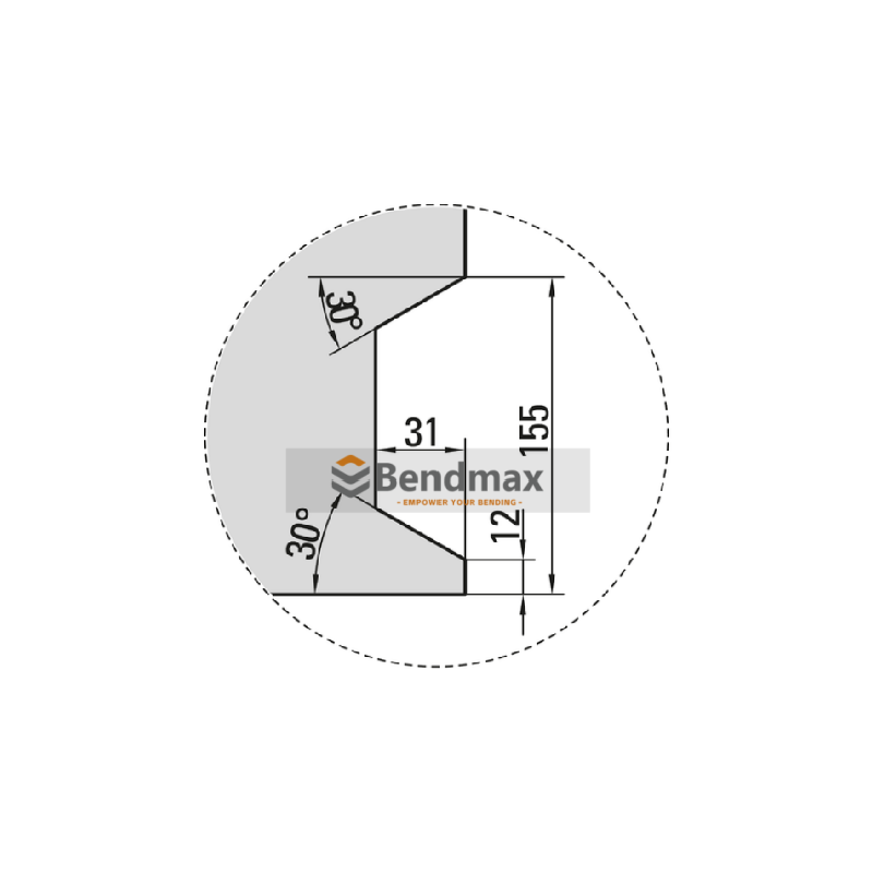 El Punzón agudo de 30° con sistema BystronicEs una matriz inferior especializada tipo Trumpf, diseñada para el conformado de chapa metálica de alta precisión. Cuenta con una abertura estrecha de 0,6 mm y un ángulo de 84° para facilitar dobleces precisos en materiales de calibre delgado. Fabricada en acero para herramientas endurecido con un radio de hombro de 6,0 mm, esta matriz minimiza las marcas superficiales y ofrece un rendimiento constante en entornos de fabricación de precisión.